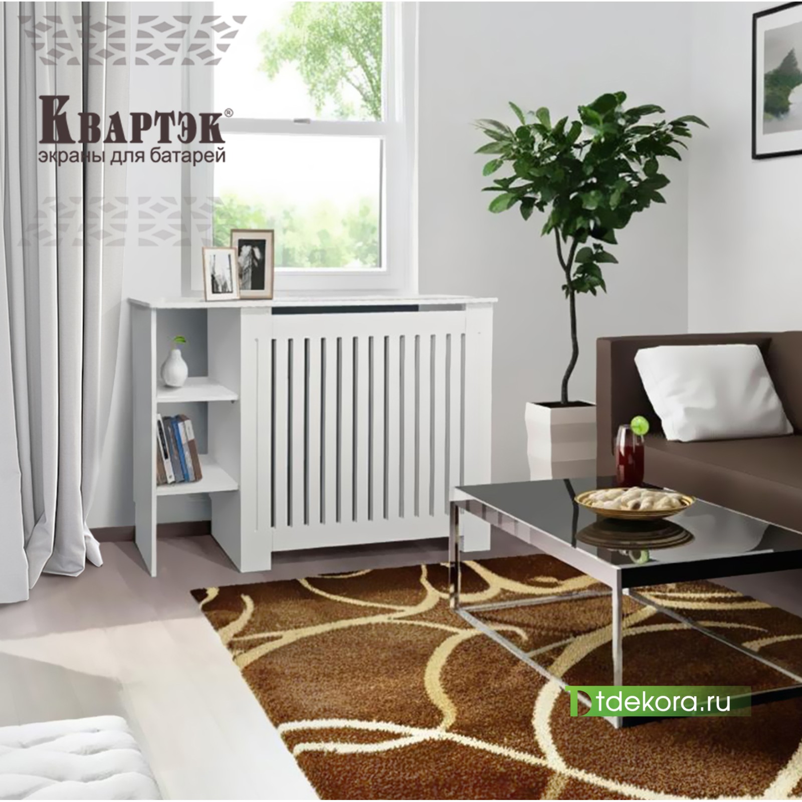 Экраны - Тумбы для батарей КВАРТЭК гармонично вписываются в любой интерьер. Конструкция тумбы позволит эффективно использовать пространство комнаты у окна, при этом функцию подоконника возьмет на себя столешница тумбы. Встроенные боковые полочки избавят от лишних предметов мебели и послужат ненавязчивым местом пристанища декора и нужных мелочей.
